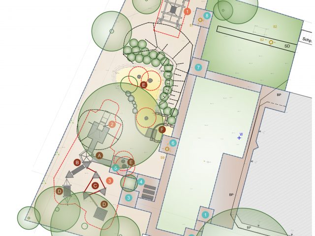 Die Konzeptplanung „Lernen mit dem Körper“ analysiert den Bestand und entwickelt ein Fundament für einen inklusiven Freiraum. Die sinnlich und körperlich wahrnehmbare Gestaltung unterstützt die Förderung der Kinder. Unter Berücksichtigung der kindlichen Verschiedenheit findet sie eine Ausgewogenheit zwischen Förderung und Herausforderung, zwischen Anregung und Vermeidung, zwischen Möglichkeit und Gefährdung – ein Balanceakt, der nur unter Einbeziehen des kundigen Schulteams gelingen kann.